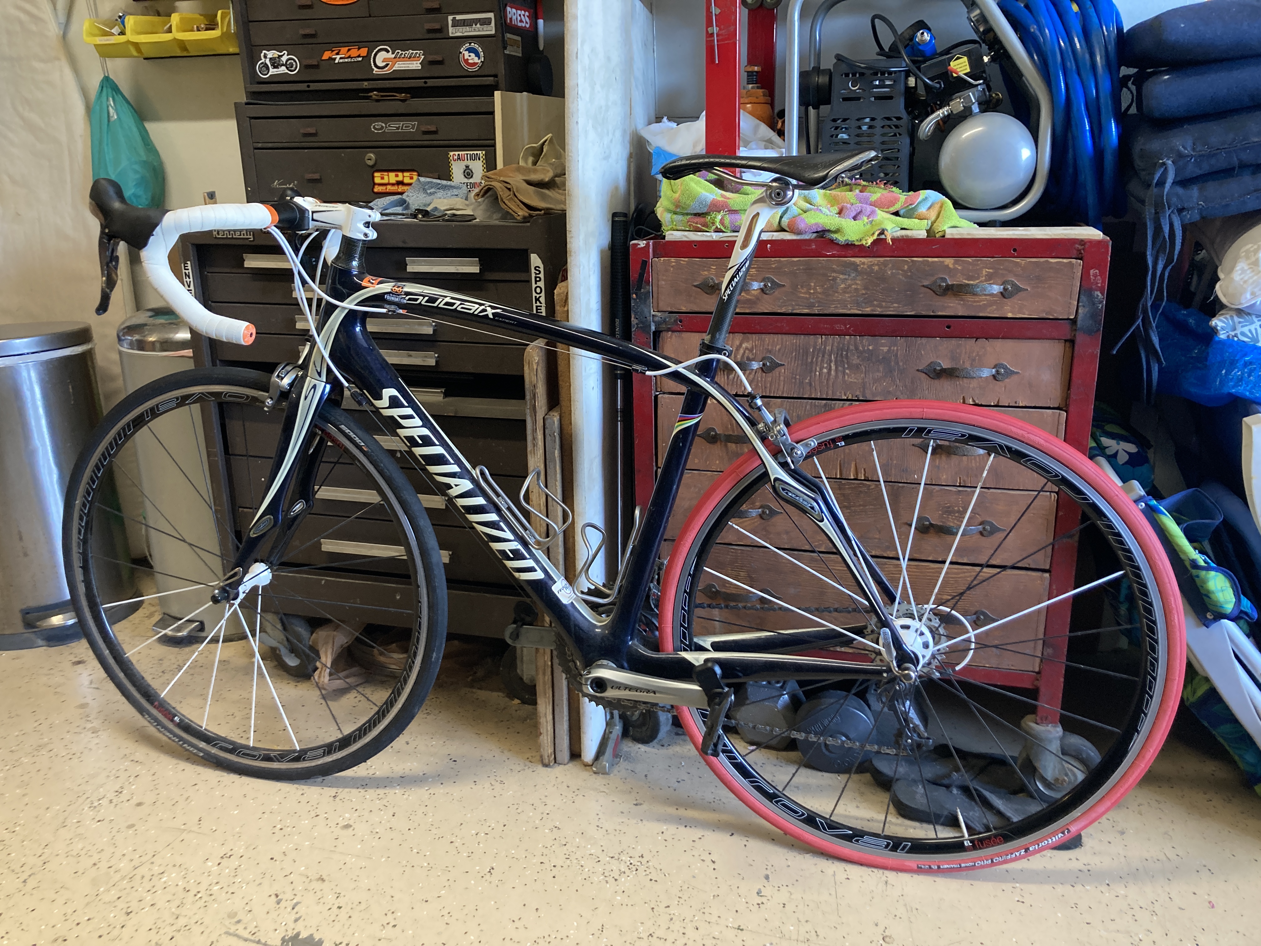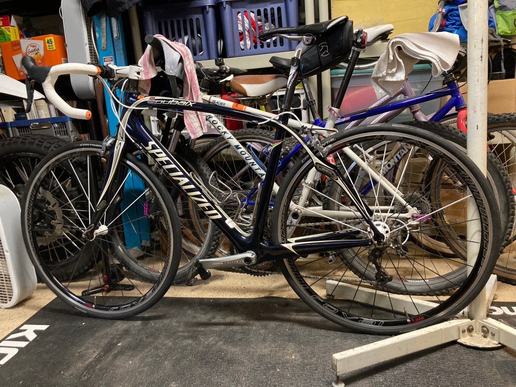 Not the most glamorous setting, but the bike is ready for the road. Seat bag is stocked and in place. The lights are strapped on and charged and the head unit has a fresh charge in it. I’ll try a short flat ride tomorrow to gauge how I feel. Then I’m hoping for longer on Saturday.