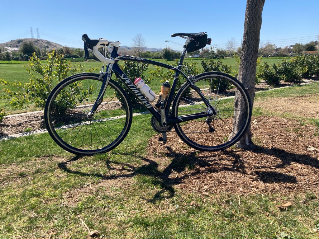 I started off the morning with a flat tire thanks to the old tube I put in. I replace that, then as I was about to set off, noticed I’d left my water bottles in the fridge. Back upstairs and down again. Make sure everything connected to the head unit. Re-establish the power meters and calibrate them, then ride. My rides all start off heading down our street so it’s mostly coasting. It felt weird to me to have the bike moving under me. I move my hand or head and the bike moves. I felt very twitchy. Starting off from that first stop sign, the bike felt like it was lurching forward from under me. Getting my balance and position back when standing on the pedals will take a few more rides.