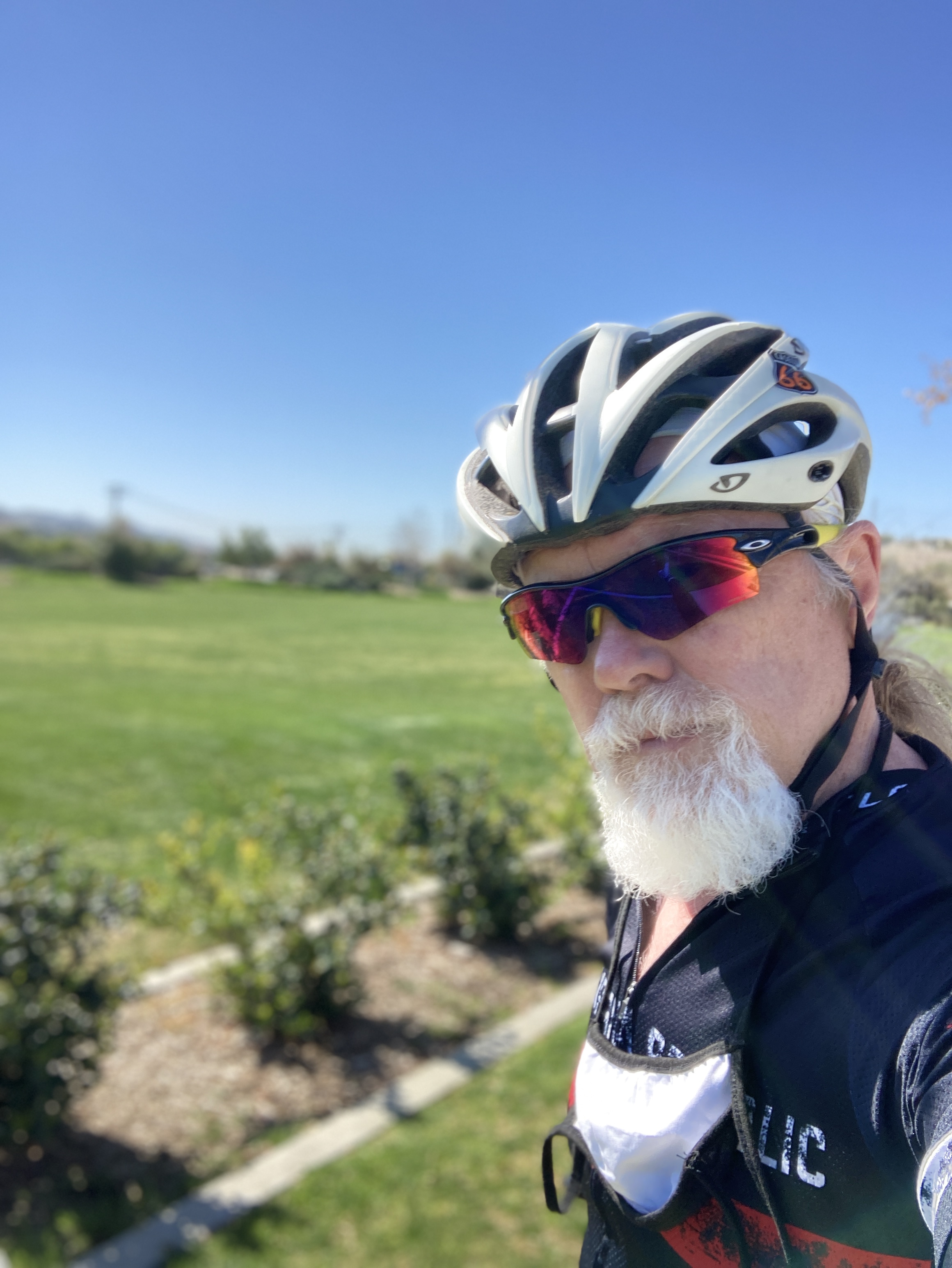 I took a selfie at the Park. The restrooms and water were on. Clean as usual and functioning.